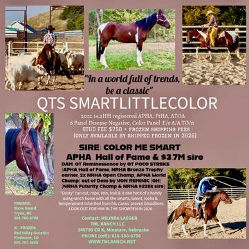 Will be bred to APHA “QTS “Smartlittlecolor“ in 2026